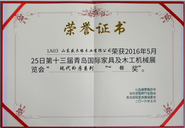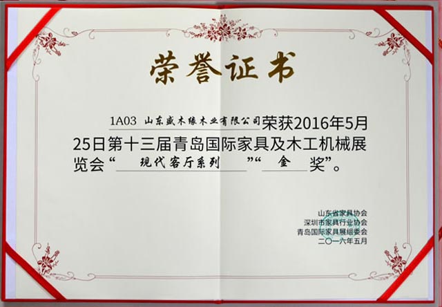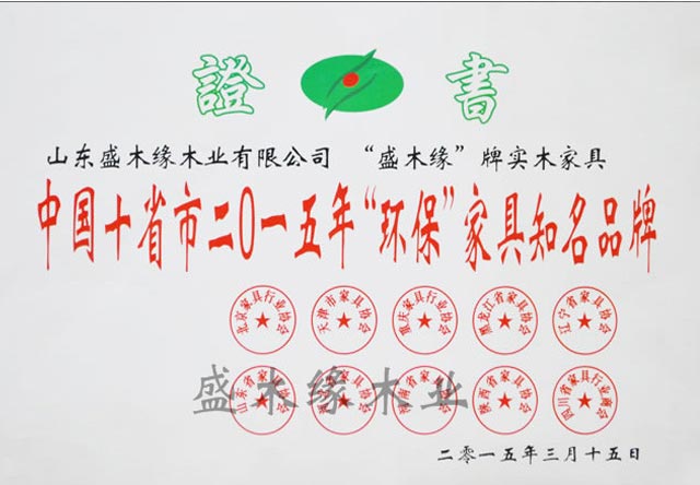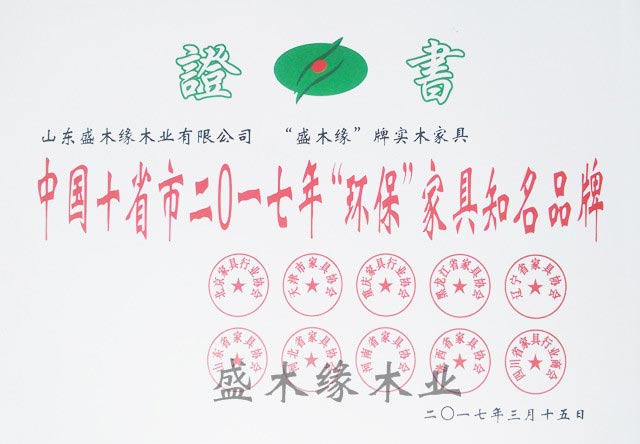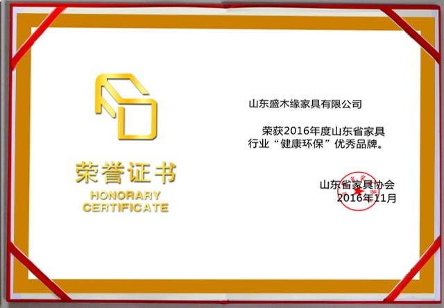 盛木緣家居先后榮獲了“中國十省市知名品牌、山東省林業龍頭企業、綠色選擇推薦、家具博覽會照片設計金銀獎、山東家具行業設計創新先進單位、AAA級資信等級證書、山東家具行業健康環保先進單位、中國十省市2017年“環保”家具知名品牌”等重要榮譽,是業內口碑品牌企業。