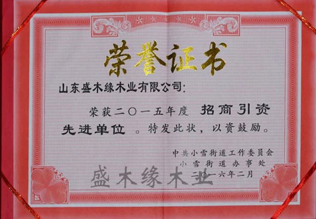 山東盛木緣木業股份有限公司現已通過ISO9001質量管理體系認證和ISO4001環境管理體系認證。